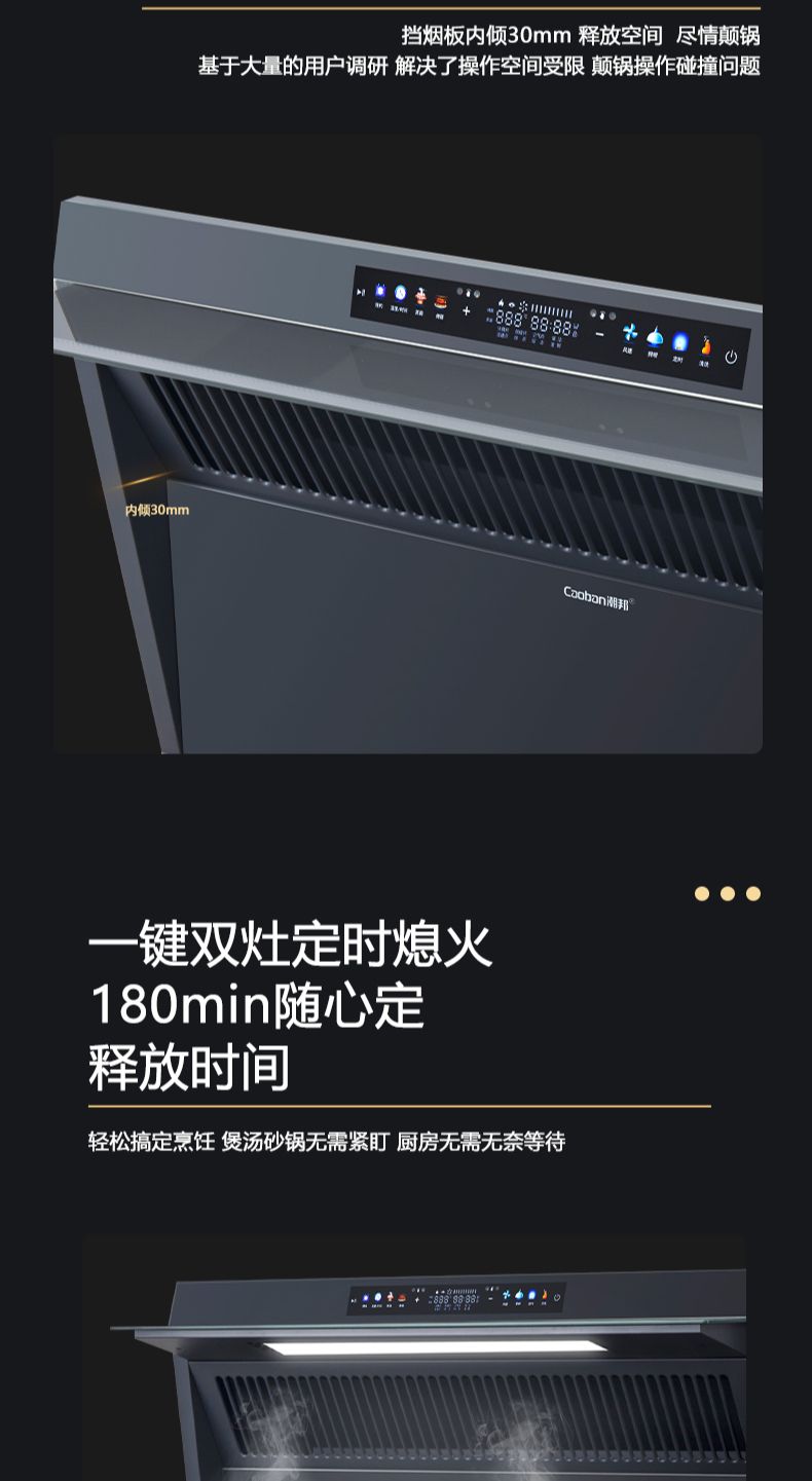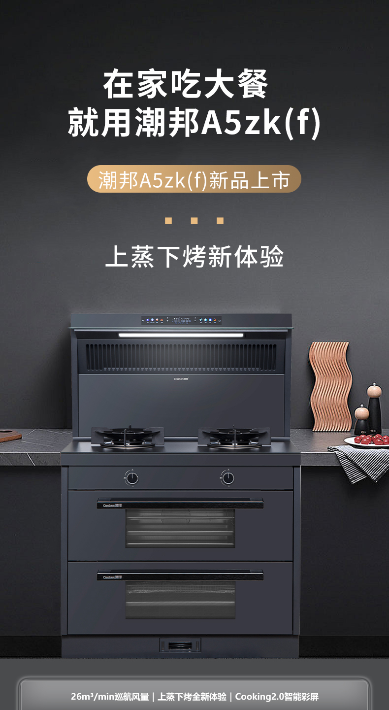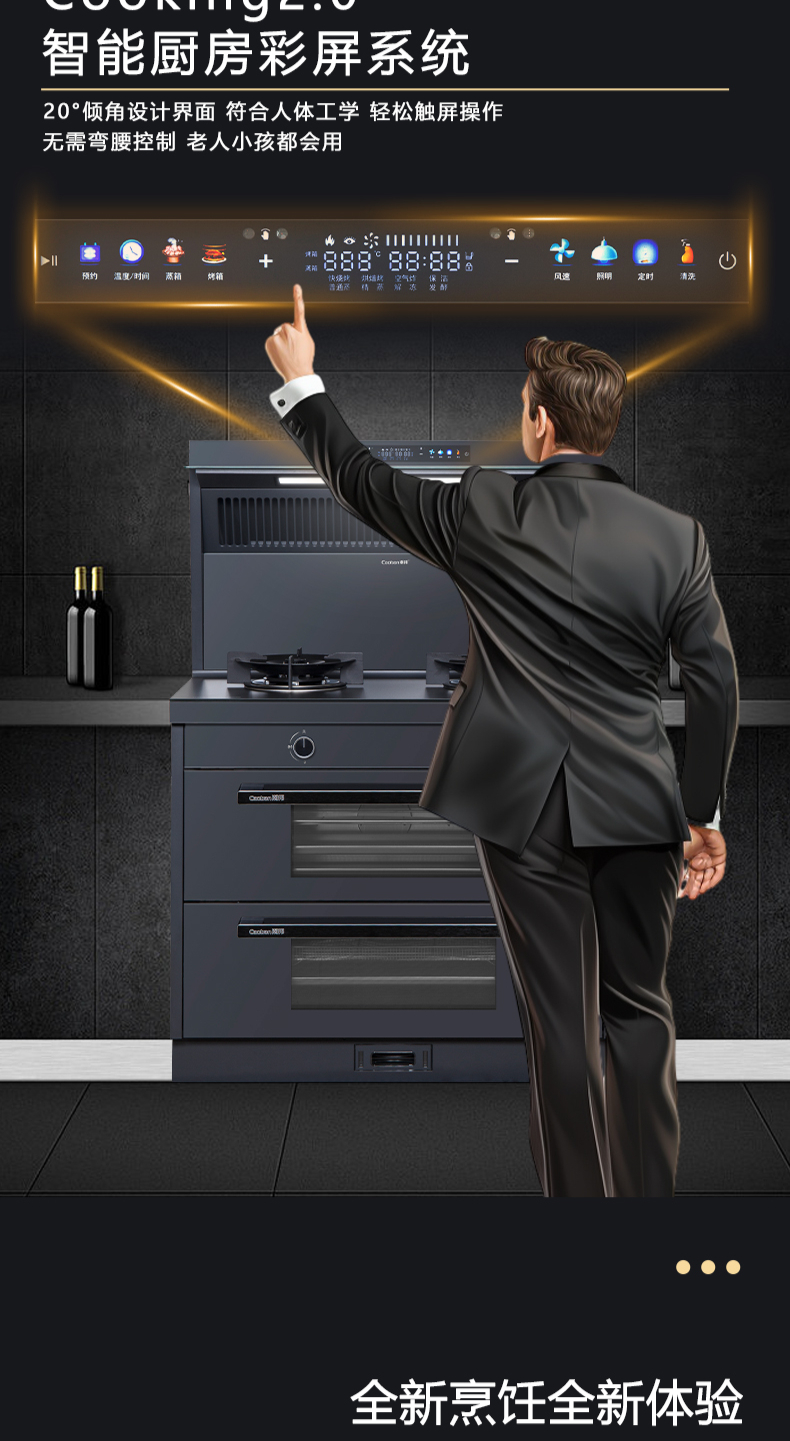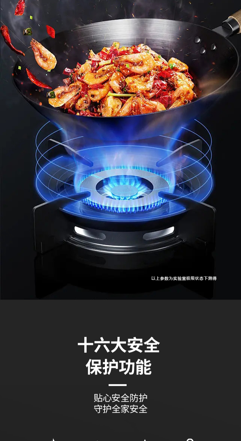 26方巡航風量,上蒸下烤新體驗,Cooking2 0智能彩屏,智能揮手感應Pro,雙灶定時熄火,碳素微晶面板,全新自清洗,十六大安全保護