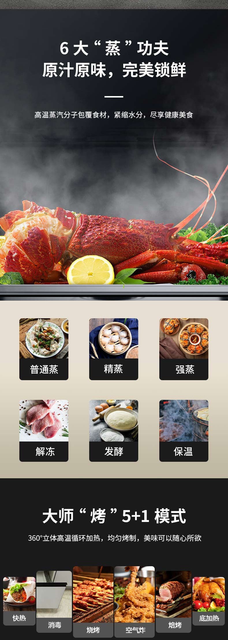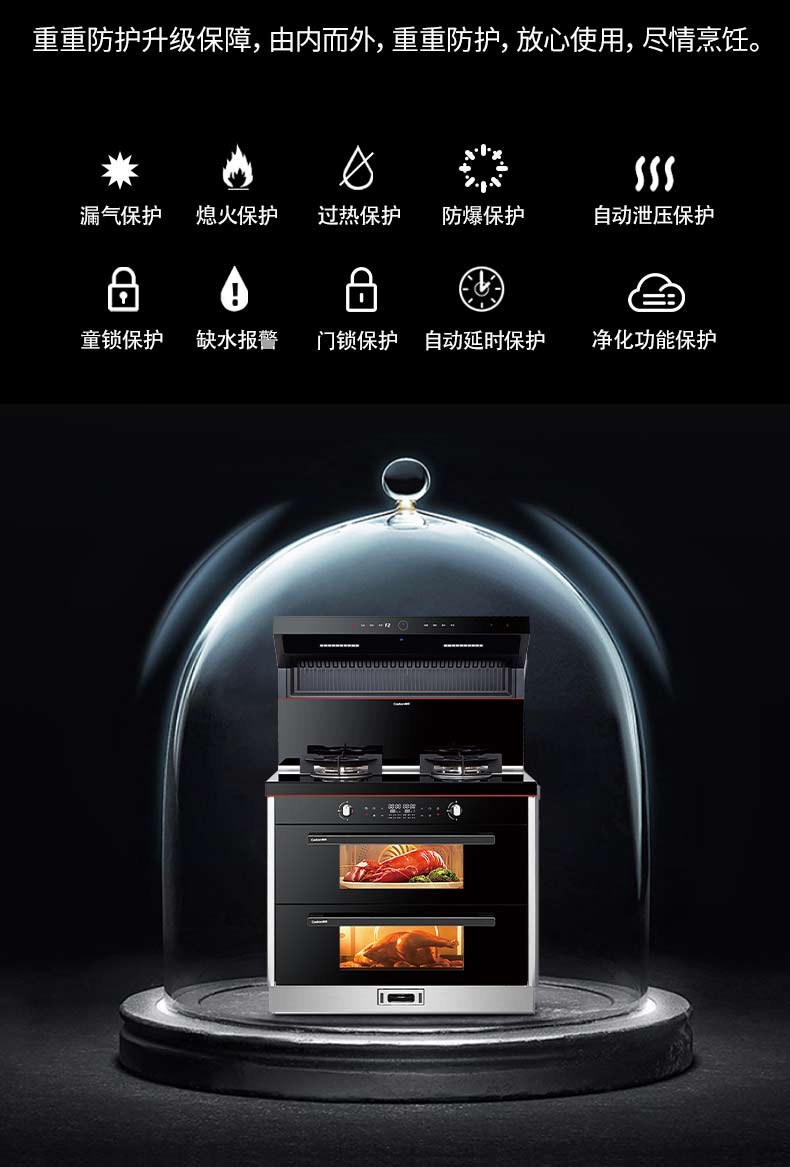 上蒸下烤,蒸烤獨(dú)立。智能控制,寬體瓷膜內(nèi)膽。